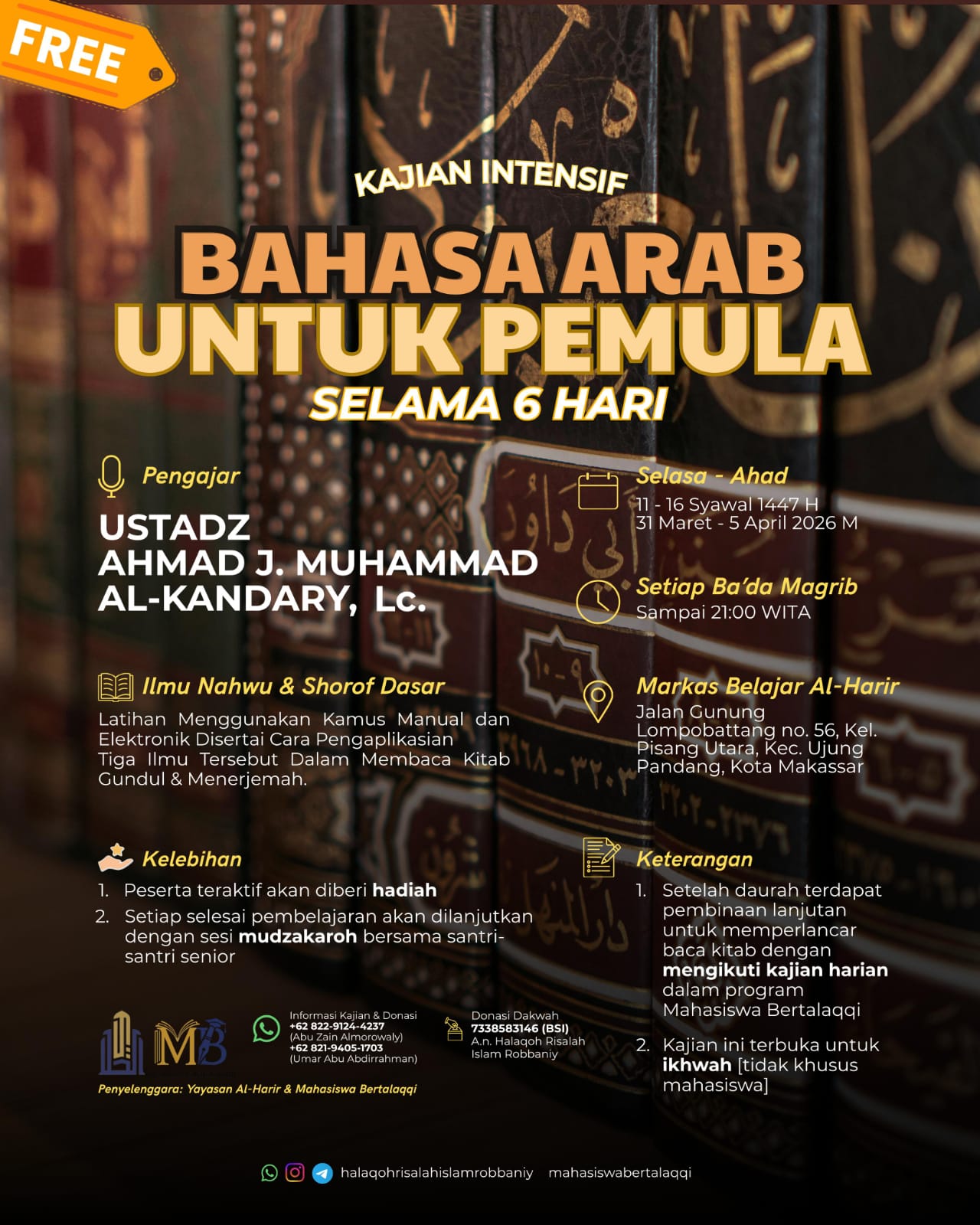Pertemuan Pertama | 11 Syawwal 1447 | 31 Maret 2026 | Bahasa Arab Pemula hanya 6 Hari